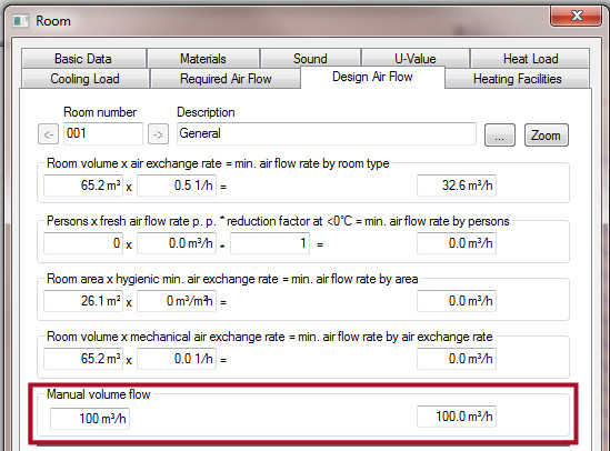The specification of the air volume flow can now be defined in m3/h or in m3/(m2*h). Manually converting a fixed volume of air flow is now no longer necessary.