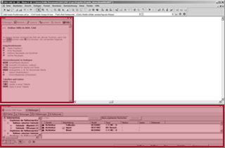 Fenster für Übersichten und Verwaltungsfunktionen Verwaltungsfunktionen und Übersichten erscheinen in untergeordneten Fenstern. Die Standardeinstellung nutzt jeweils ein angedocktes Fenster am linken und unteren Rand des Hauptfensters. |