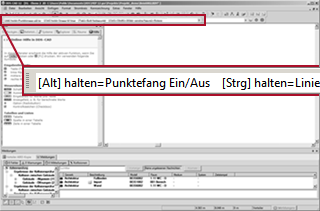 Hinweiszeile Viele Funktionen erwarten nach dem Aufruf weitere Handlungen. In diesem Feld erscheint eine kurze Übersicht über mögliche Handlungsoptionen für die aktive Funktion. Für eine vollständige Übersicht rufen Sie die Online-Hilfe auf. Drücken Sie dazu |