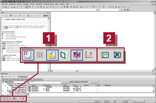 Symbolleiste (Standard) In der Standardeinstellung sind mehrere untergeordnete Symbolleisten für allgemeine Funktionen am oberen Bildschirmrand angedockt. Sie können jede einzelne Symbolleiste an einem anderen Bildschirmrand andocken oder frei auf der Oberfläche „schweben“ lassen Symbolleiste (WorkingModes) spielt eine besondere Rolle. Mit der Auswahl eines Workingmodes aktivieren Sie die spezifischen Funktionen eines Aufgabenbereiches in Symbolleiste (Werkzeuge) |