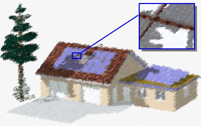 The model appears as a painted scene with simulated brush strokes. The edges between the surfaces are blurred.