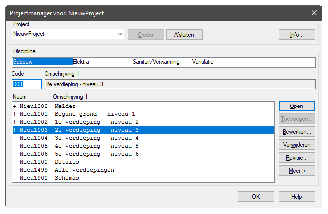 Bouw de verdiepingen van het gebouw in de projectmanager consistent van onder naar boven op.