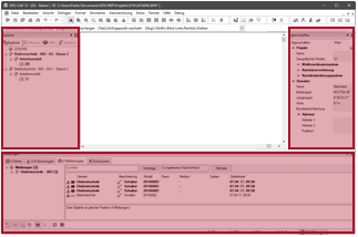 Window for overviews and management functions Management functions and overviews appear in subordinate windows. The default setting uses one window each docked to the left, right and the bottom edge of the main window. |