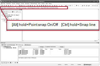 Status bar When working with dynamic functions (e.g. symbols, routing systems, cables), DDS CAD displays various types of information in the status bar. The display behaves in a context-sensitive manner relative to the active function. |