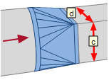 - Point to the position for installation in the ventilation duct. The ventilation duct appears as a marked object. DDScad displays the information about the duct segment and the current position.