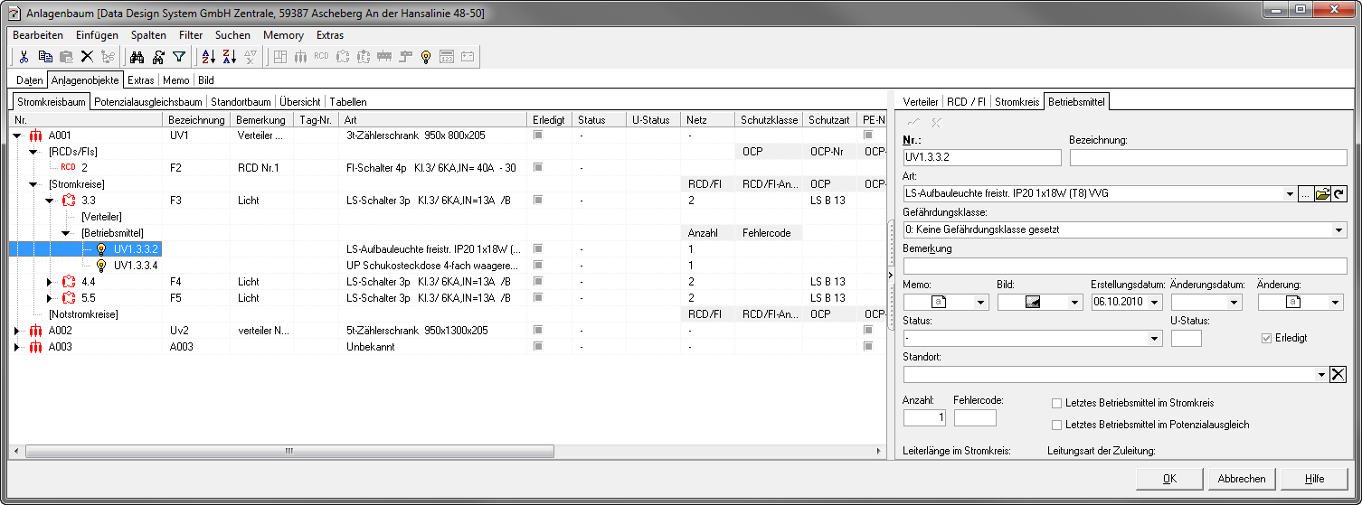 Alle übergebenen Daten sind im Anlagenbaum aufrufbar. Auf der rechten Seite werden jeweils die Details angezeigt.