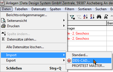 Mit dem PlugIn "DDS-CAD" wird das zuletzt aktive DDS-Projekt gefunden und die Daten werden eingelesen.