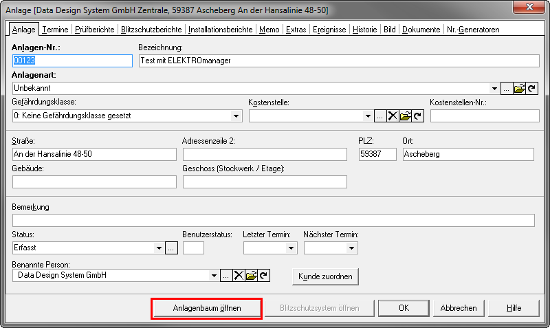 Mit dem Button [Anlagenbaum] werden die Details aufgerufen.