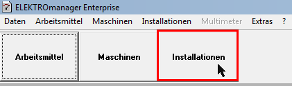 Der ELEKTROmanager wird gestartet und [Installation] wird gewählt.