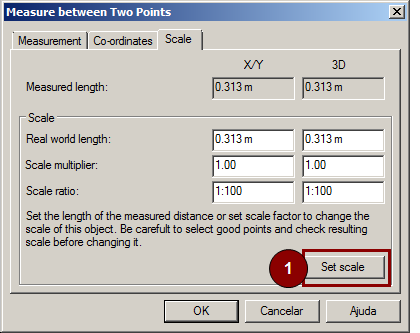 In version 8 DDS-CAD automatically detect whether the two reference points belong to the same scalable object. If so, you can change the scaling of the measured object directly in the tab "Scaling". Click Set scale (1).